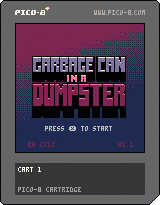 GARBAGE CAN IN A DUMPSTER is a retro arcade/platformer about refuse and rebellion made by Smoothhliam & Collin Cunningham for the excellent PICO-8 fantasy console.